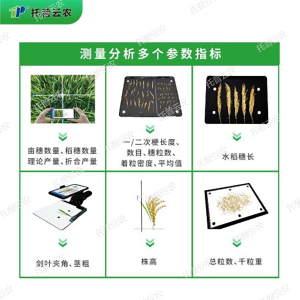 包括水稻畝穗數(shù)量、理論產(chǎn)量、折合產(chǎn)量、一/二次枝梗、穗長、穗粒數(shù)、總粒數(shù)、千粒重、株高、劍葉夾角、莖粗等表型特征在內(nèi),托普水稻表型檢測系統(tǒng)涵蓋從宏觀到微觀的全方位表型信息,提供的水稻畝穗數(shù)檢測、水稻整穗考種、稻穗形態(tài)分析、作物夾角測量、作物株高測定、種子計(jì)數(shù)與分析等多個(gè)功能模塊實(shí)現(xiàn)多參數(shù)指標(biāo)測量,數(shù)據(jù)通過統(tǒng)一的APP進(jìn)行實(shí)時(shí)匯總、互聯(lián)互通和精密管理,便于用戶隨時(shí)查看、分析、分享水稻表型信息,為科研人員更深入地解析水稻特征、水稻高產(chǎn)培育提供完整的解決方案。