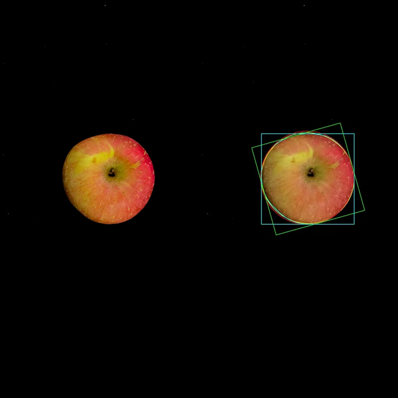 (1) 果實(shí)形態(tài)解析:基于先進(jìn)視覺(jué)算法,在3秒內(nèi)自動(dòng)完成目標(biāo)識(shí)別與分割,精準(zhǔn)解析果實(shí)輪廓、直徑、長(zhǎng)寬、周長(zhǎng)、顏色、數(shù)量等關(guān)鍵外觀性狀。